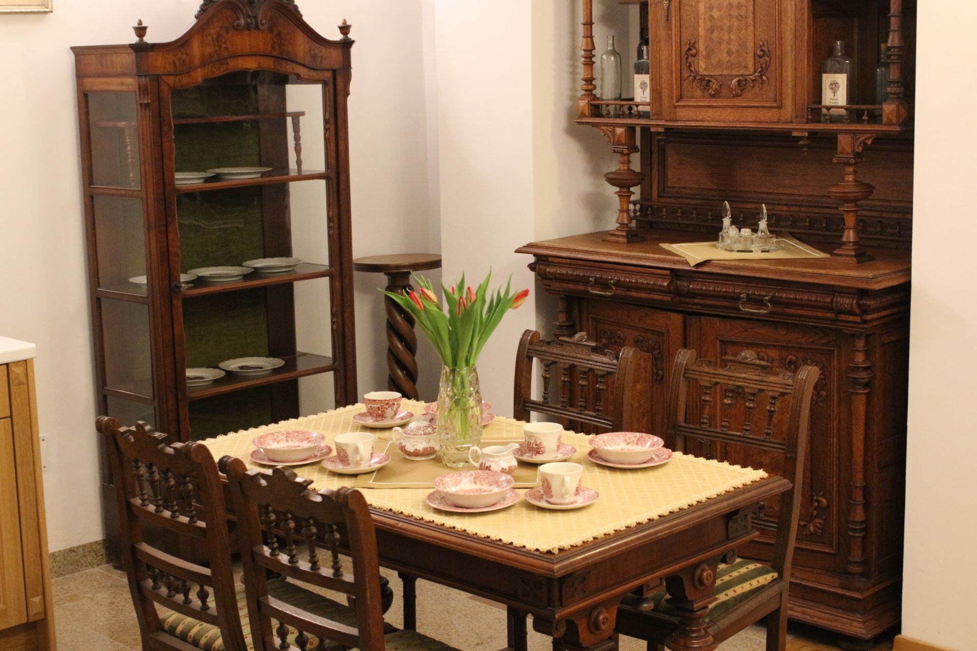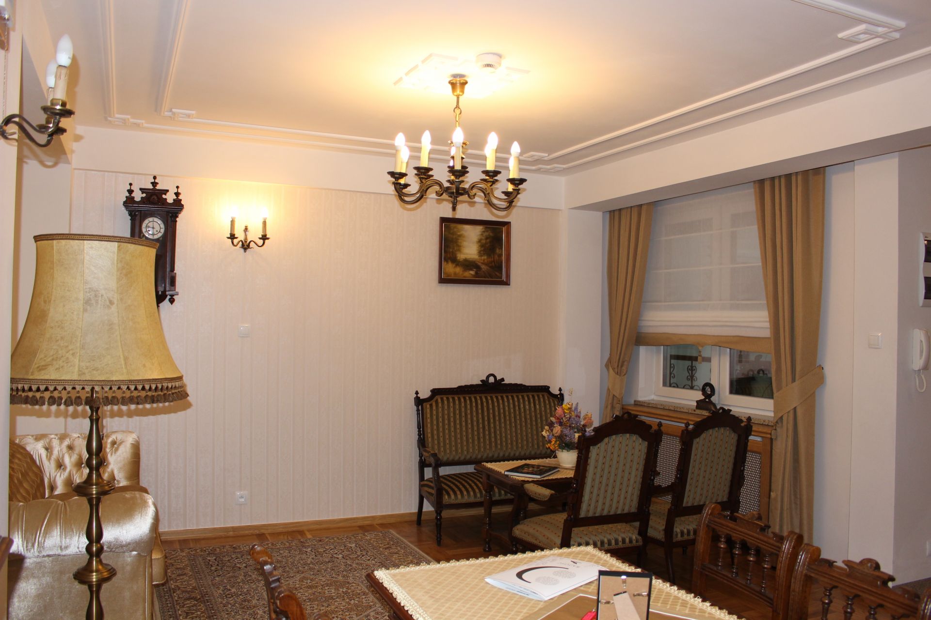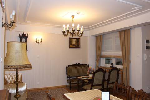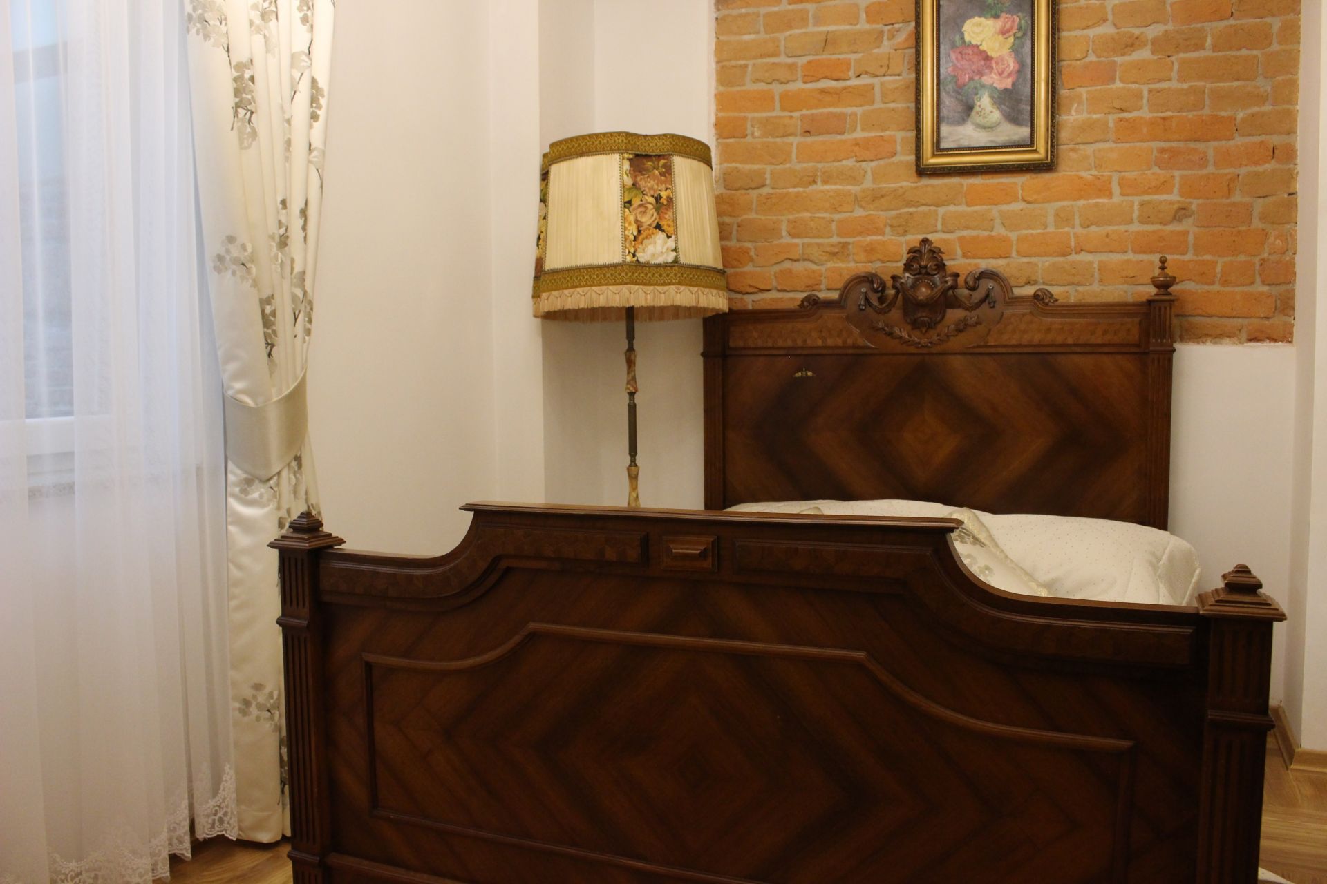 Apartament 204 ma powierzchnię 42 m2 i znajduje się na drugim piętrze kamienicy. Jest to mały apartament, odpowiedni dla dwóch osób, umeblowany w stylu eklektycznym. W skład apartamentu wchodzą trzy pomieszczenia: salonik wraz z aneksem kuchennym, sypialnia oraz łazienka. Salonik wyposażony jest w kanapę, komodę, ławę oraz telewizor z programami telewizji naziemnej. Częścią saloniku jest aneks kuchenny wyposażony w stylowy kredens, stół z czterema krzesłami, lodówkę, elektryczną płytę grzewczą dwupalnikową, komplet naczyń, sztućców, garnków oraz innych akcesoriów kuchennych. W osobnej sypialni znajdą Państwo pojedyncze łóżko o szerokości 1,40 m, szafę wnękową i komodę. Łazienka wyposażona jest w kabinę prysznicową. W apartamencie dostępna jest również deska do prasowania, żelazko, suszarka do włosów, komplet ręczników, odkurzacz oraz darmowe Wi-Fi. Okna apartamentu wychodzą na galerię zadaszoną szklanym świetlikiem, z tego też względu dostęp światła dziennego do apartamentu jest ograniczony.